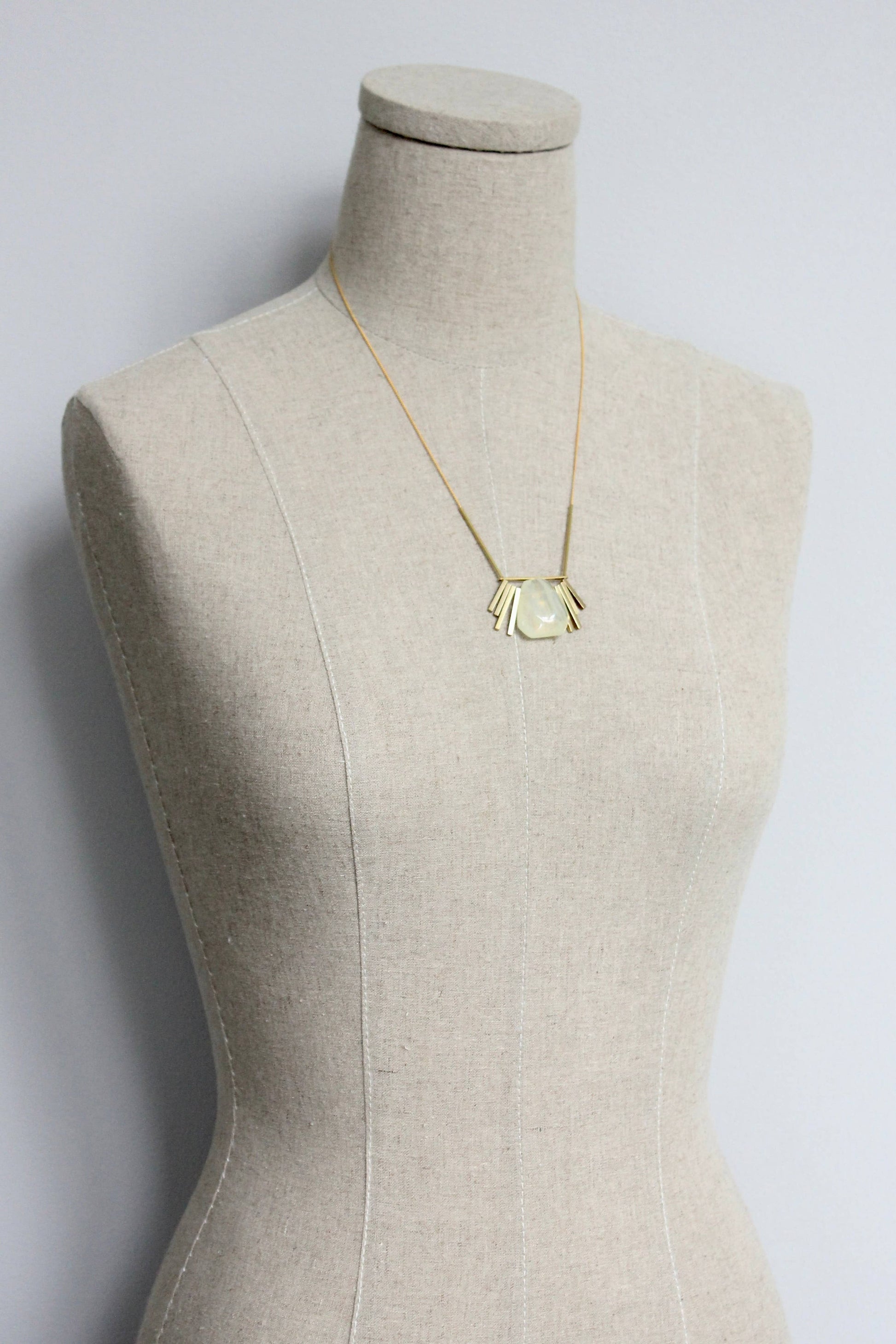 Like liquid rays that drench the sky, this 20” necklace with gold color plated chain, pineapple quartz, brass bars and 1 inch extender is sure to brighten your day.